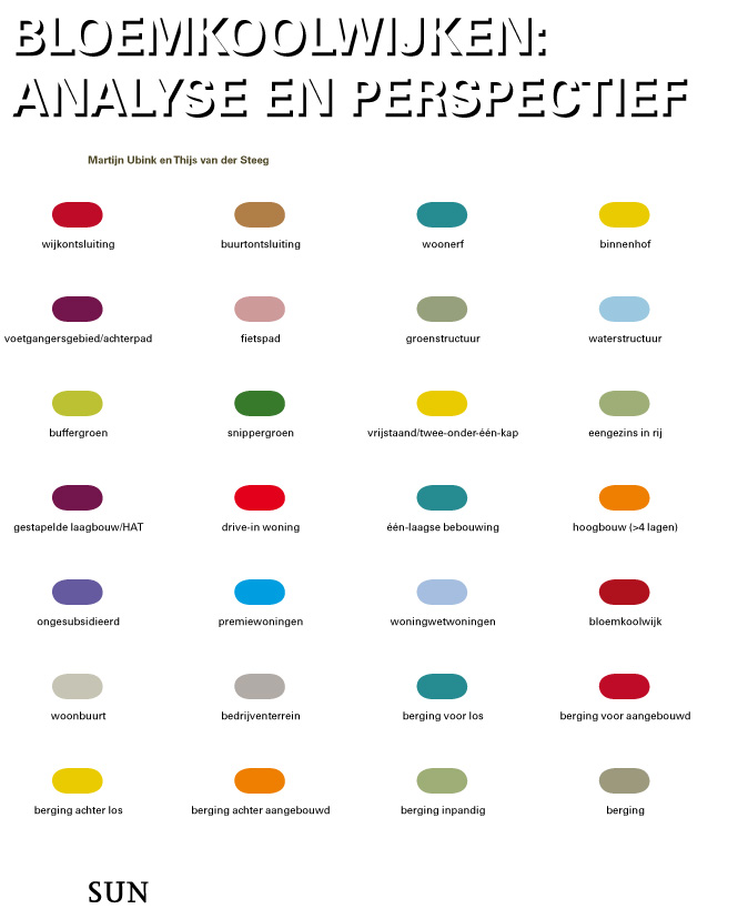 In het boek ‘Bloemkoolwijken’ worden ruim 35 bloemkoolwijken in kaart gebracht. De auteurs Martijn Ubink en Thijs van der Steeg onderzochten deze (en 125 andere) wijken op trends en ontwikkelingen in de woningvoorraad, woningmarktpositie, bewonerssamenstelling, leefbaarheid én op ruimtelijke en stedenbouwkundige kenmerken en het functioneren hiervan vandaag de dag. De resultaten van het onderzoek naar de bloemkoolwijken zijn terug te vinden in heldere kaarten en scherpe analyses die veel nieuwe ruimtelijke en sociaal-economische inzichten verschaffen. Deze inzichten zijn aangevuld met schitterende foto’s van fotograaf Raimond Wouda.