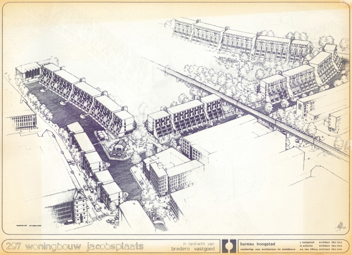 De wens van het gemeentebestuur om de binnenstad te verlevendigen door woningbouw en Waterverband, een idee van de architect Hoogstad om een wandelroute aan te leggen langs de Rotte, heeft in 1982 geleid tot de uitvoering van het ontwerp voor het woningbouwcomplex aan de Sint-Jacobsplaats . Geheel volgens de toen geldende stijlvoorschriften zijn de woningen op kleinschalige en structuralistische wijze ontworpen. Het complex bestaat uit een totaal van 1134 woningen, waarvan 300 terrassenflats aan het water, een woontoren met 18 verdiepingen en een woongebouw boven een parkeergarage. De vier-en vrijfkamerwoningen hebben hun entree en hun buitenruimte aan het verhoogdewoondek. Ze zijn bovendien voorzien van dakterassen.